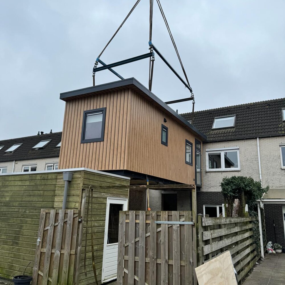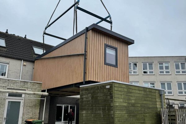 Deze prachtige mantelzorg unit hebben wij uit eigen fabriek geprefabriceerd en in één keer geplaatst bij de bestaande woning!