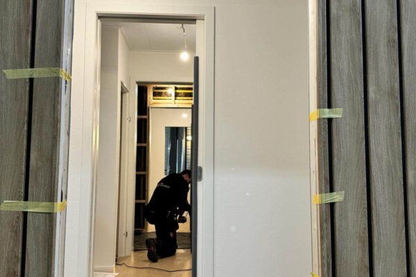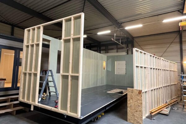 Op een professioneel opgezette productievloer worden woningen gefabriceerd die volledig op maat worden gemaakt.
