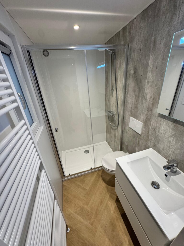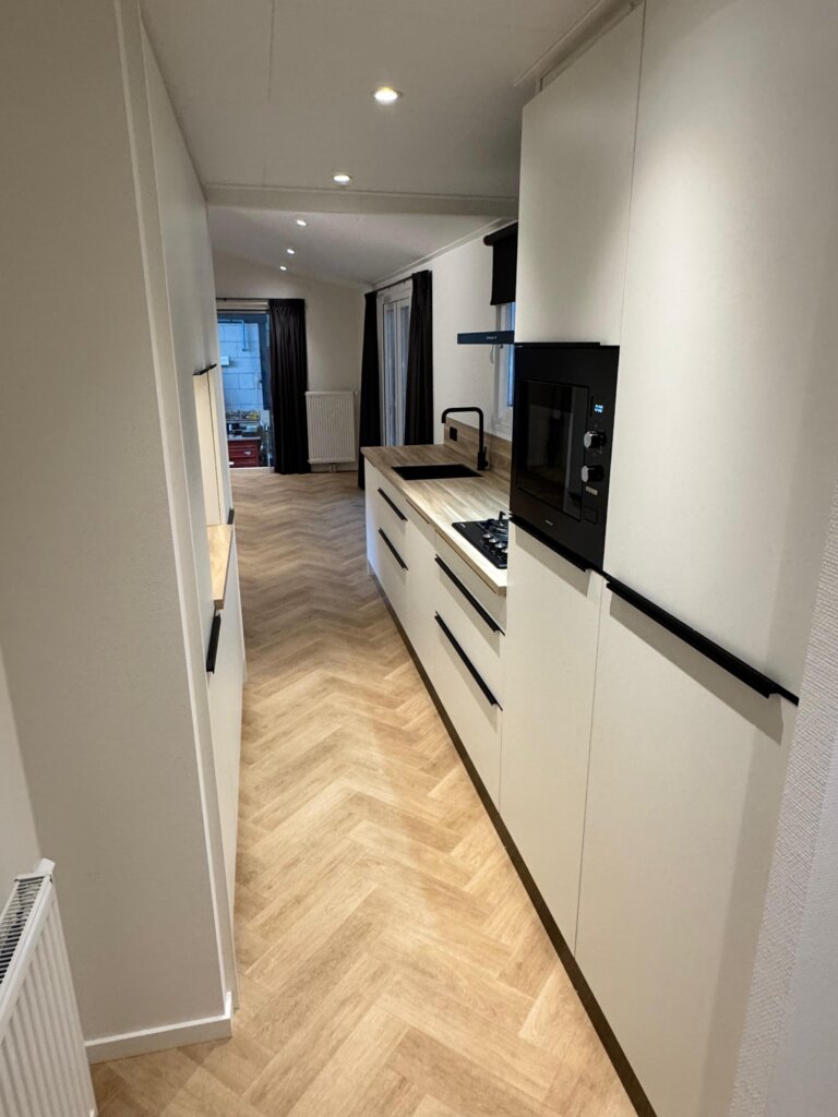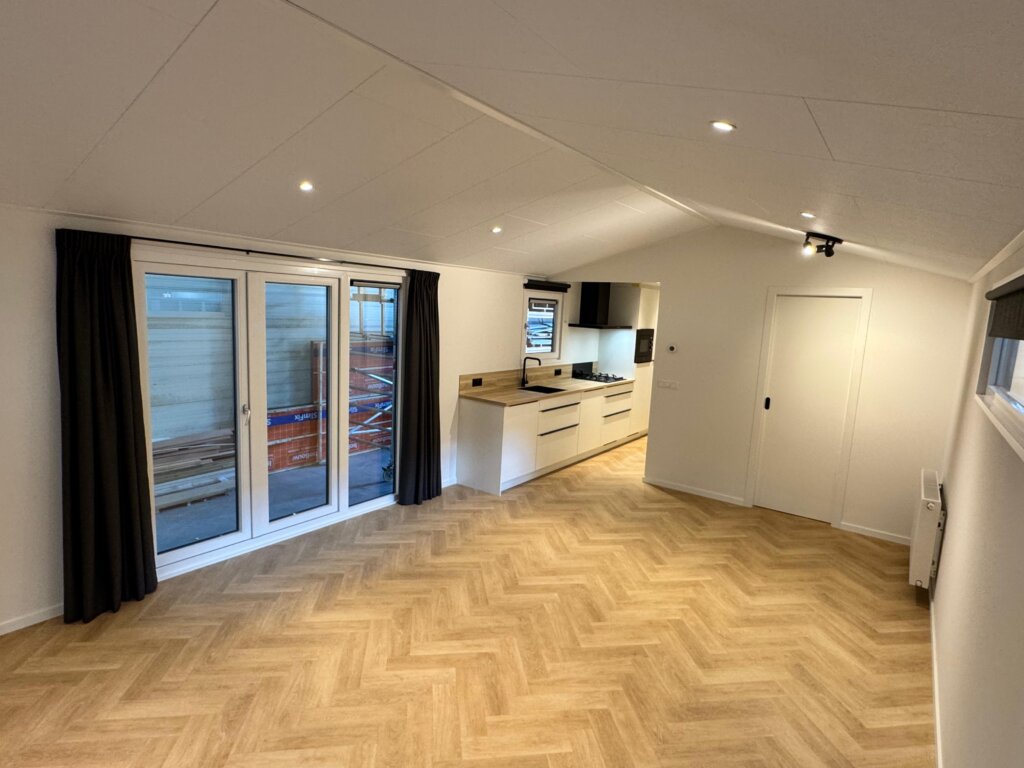 Kom kijken op Recreatiepark de Dikkenberg naar deze woning, 4 persoons, onderhoudsarm met warme & lichte interieur kleuren. Een woning op maat gemaakt voor deze plek zonder concessies te doen aan kwaliteit of gebruiksgemak.
