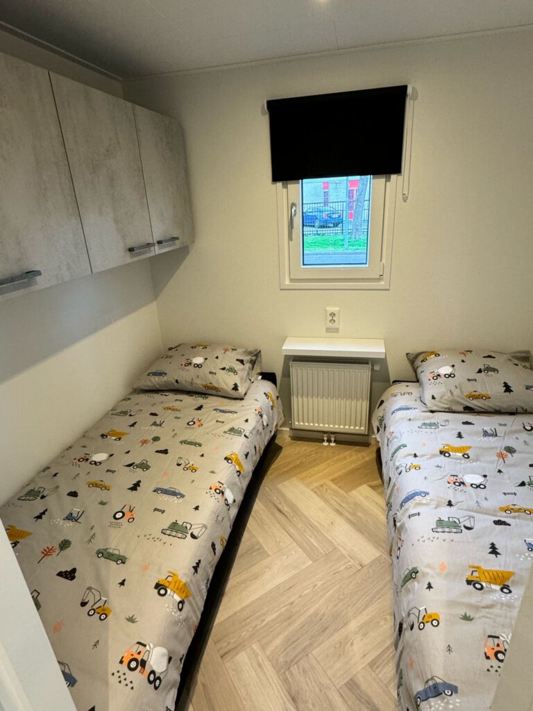 - Kinderkamer voorzien van 2x boxspringbed 80×200 en hangkasten